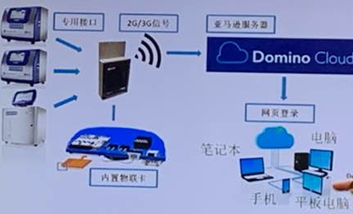 1、当配置了多米诺智能平台以后,喷码机的数据将使用2G/3G信号由多米诺智能平台发送到亚马逊服务器的Domino Cloud 上,并通过网页形式,将多米诺智能平台呈现出来。